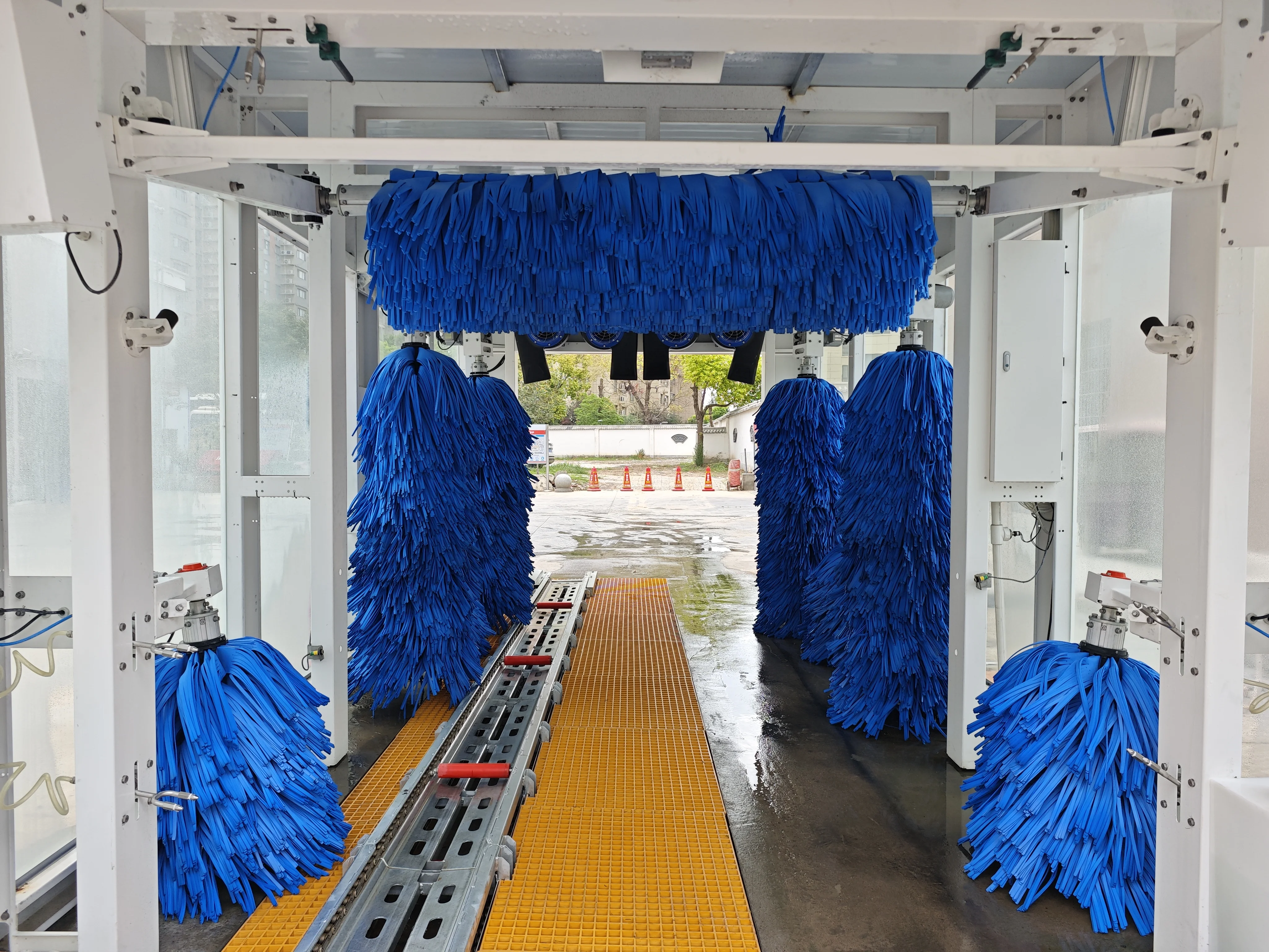 隧道式洗車機憑借連續作業特性,每小時可清洗 50-60 輛車,單日洗車量正??蛇_到500輛。這種優勢在高峰時段尤為明顯,當多輛車輛依次進入輸送機,前車完成風干時,后車已進入刷洗環節,完全適配車流量密集的樞紐型加油站。