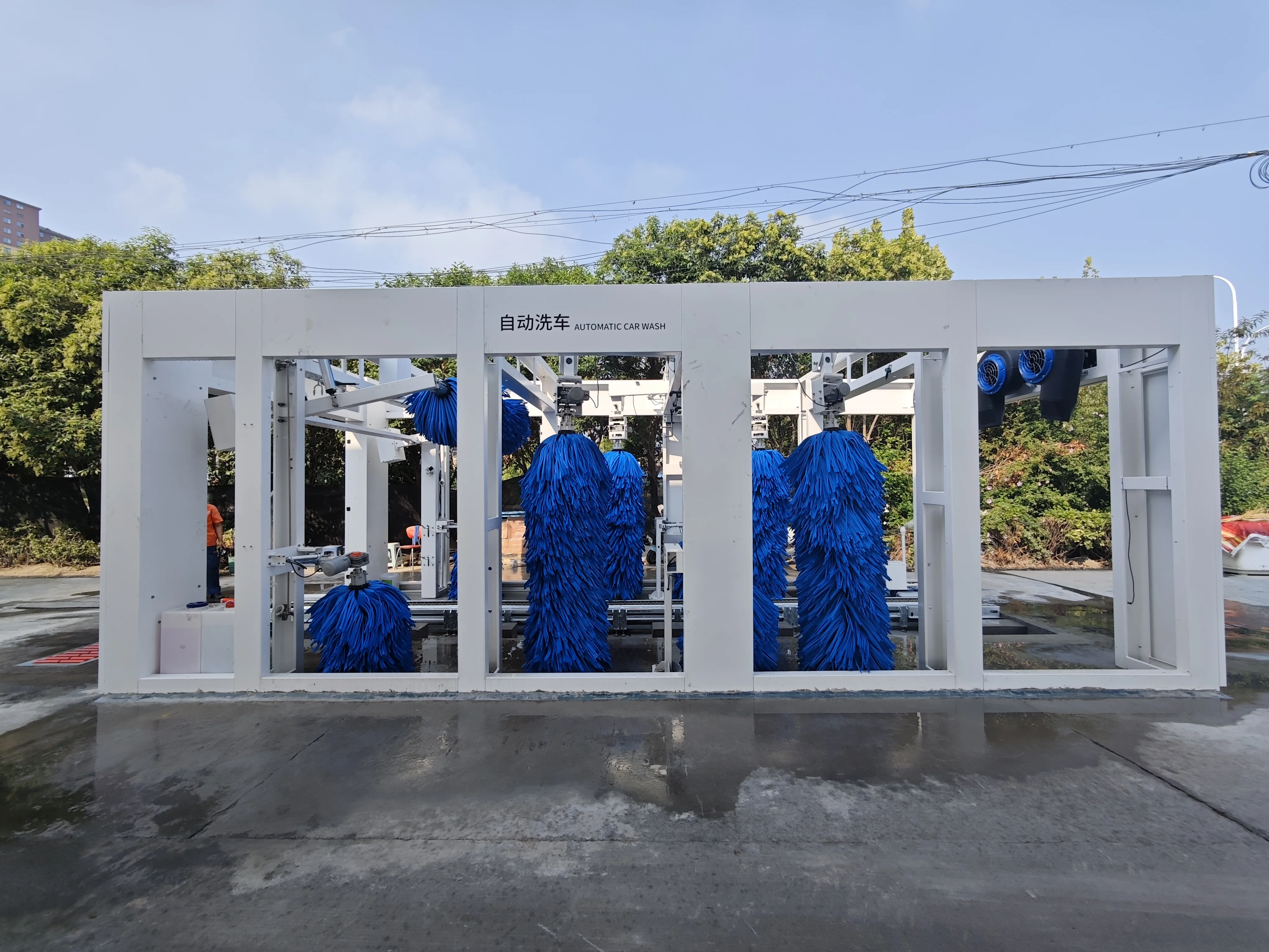 往復式洗車機則采用 “車輛固定、設備移動” 的龍門式結構,車輛停穩后,搭載刷洗模塊、清洗劑模塊、風干模塊的洗車機在軌道前后往復運動,完成仿形清洗及風干全過程洗車。其核心優勢在于通過智能傳感技術精準識別車身輪廓,適配不同車輛的清洗需求。OPW旗下往復式設備更搭載智能仿形電控系統配合高復合毛刷,在保證清洗精度的同時避免了車漆損傷風險。